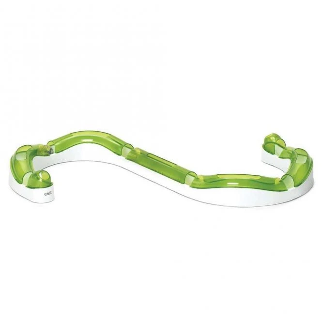 Die Spielschiene „Wave“ enthält erhöhte Elemente – für abwechslungsreichere Bewegungen. Sie besteht aus 7 Elementen (2 Endstücke, 4 Kurvenelemente, ein gerades Element) und einem Ball. Die Spielschiene ist kompatibel mit den neuen Senses 2.0 Produkten und 25 cm länger, als das vorherige Modell.
