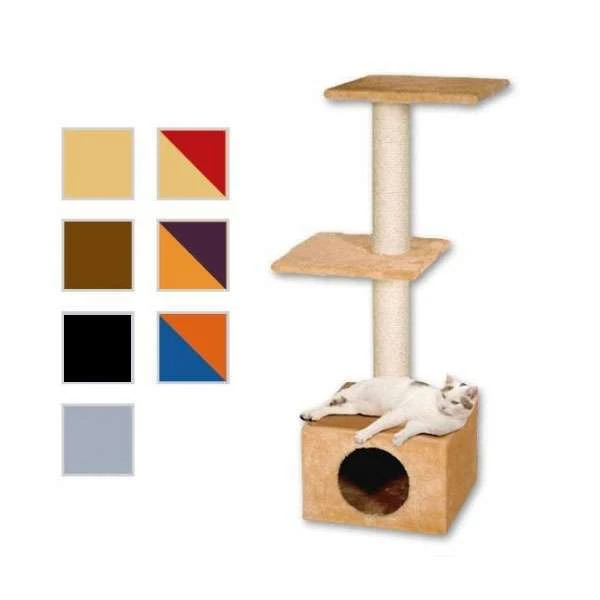Die Platten und die Höhle, die mit Plüsch bezogen sind, und die Sisal-Kratzstämme bieten sowohl einen weichen Schlafplatz, als auch eine gute Möglichkeit zum Krallenschärfen.