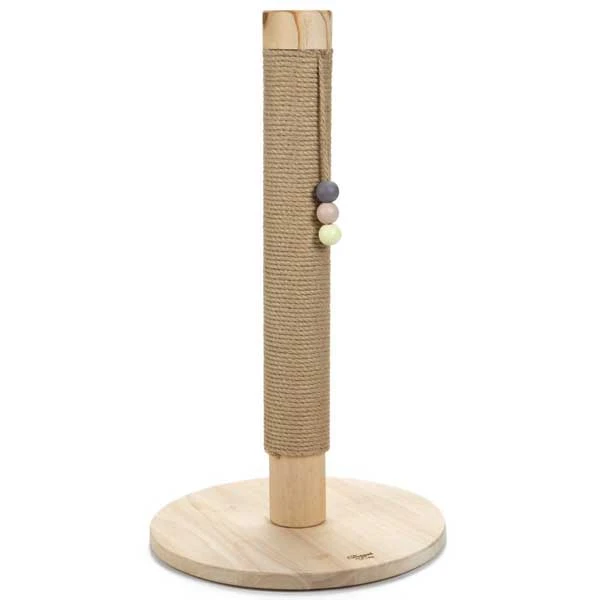 Der Kratzbaum Sinora aus Naturholz und Sisal hat eine Höhe von ca. 70 cm und einen Durchmesser von ca. 40 cm.