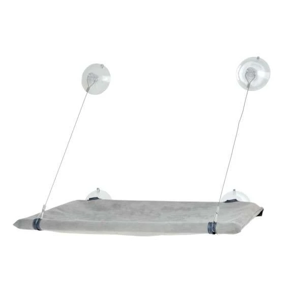 Der neue Schlafplatz muss nicht kompliziert an Heizkörper oder Wand montiert werden, sondern wird einfach mit Hilfe von Saugnäpfen an der Fensterscheibe befestigt.