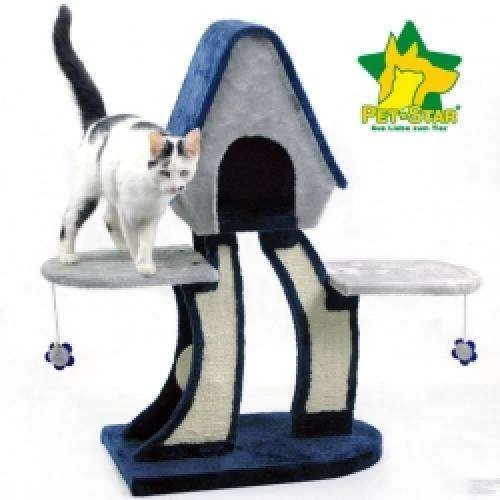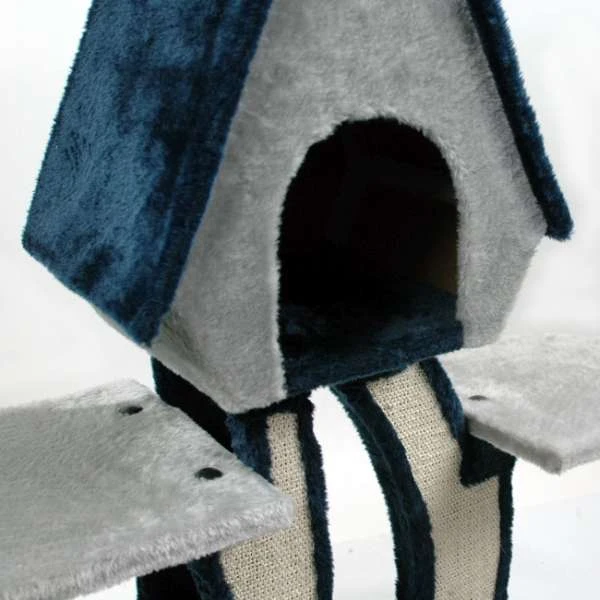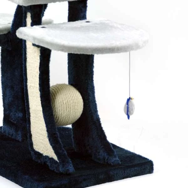 Zum Krallenschärfen besitzt dieser Kratzbaum keine gewöhnlichen Sisalstämme. Anstelle der üblichen Stämme werden Plüschplatten verwendet, die mit Sisalflächen bestückt sind. Zusätzlich ist an einer Seite zwischen zweien dieser Platten eine drehbare Kugel, die mit Sisal umwickelt ist und einen Durchmesser von ca. 13 cm hat. Diese und zwei Spielzeuge an Gummibändern inklusive Glöckchen dienen als Beschäftigung und Anregung zum Spielen.
