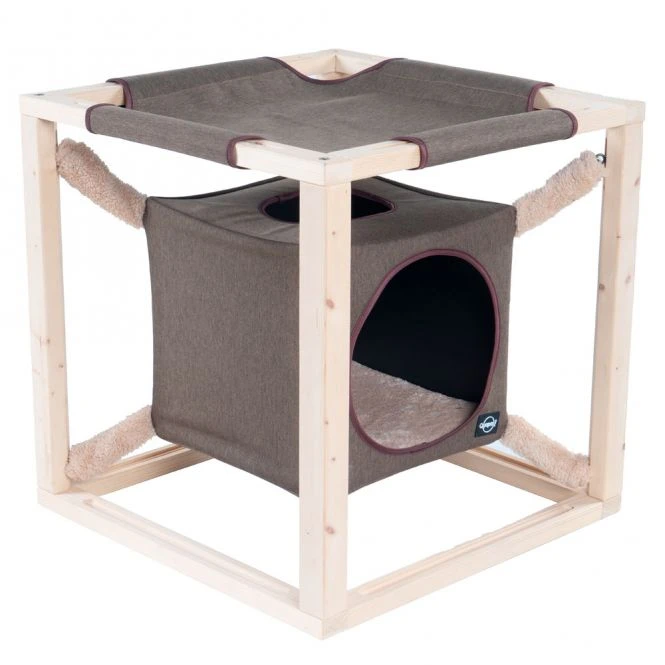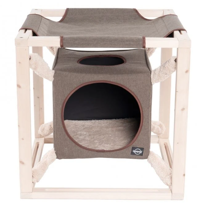 Dieser Katzenwürfel von der Marke Quapas! ist der ultimative Liegeplatz für Ihre Katze. Ihre Katze hat die Wahl zwischen einem wunderbar geschützten Platz im Kubus oder an der Spitze der Hängematte mit Blick über den Raum.