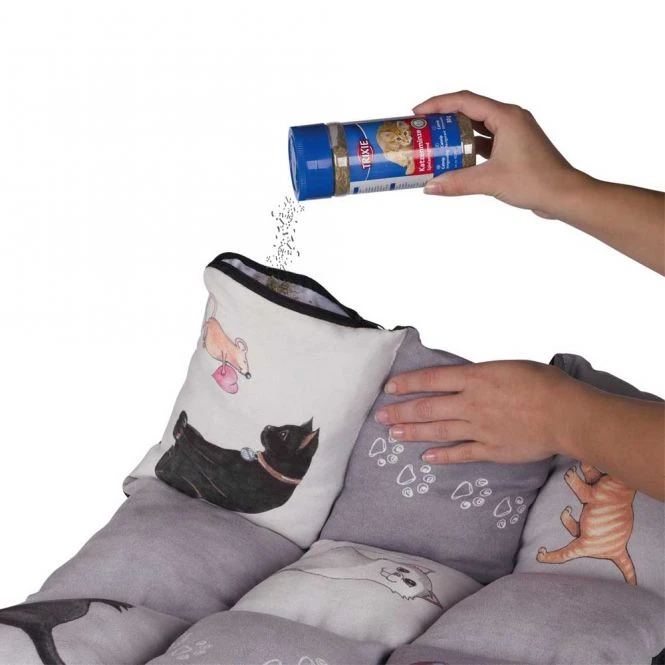 Eine eingenähte Tasche eignet sich toll zum Befüllen mit Catnip oder Baldrian (nicht im Lieferumfang enthalten). Die Decke bietet Ihrer Samtpfote eine warme und weiche Liegefläche auf kalten, harten Böden und ist mit einer rutschfesten Unterseite ausgestattet. Die Decke kann per Handwäsche gereinigt werden.