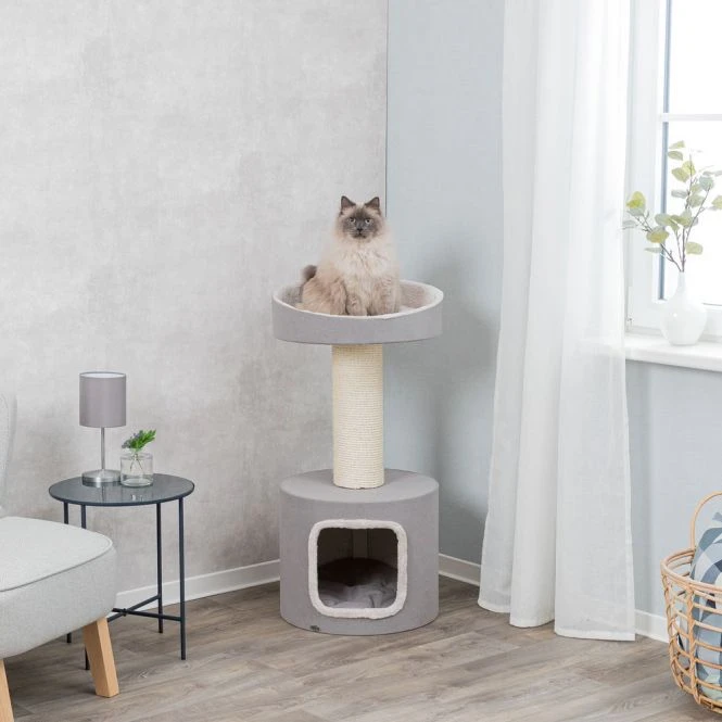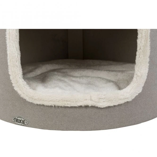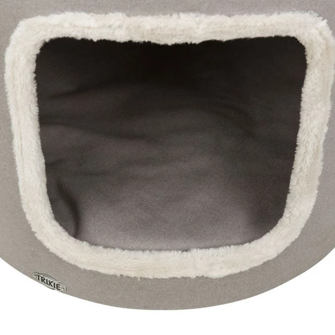 - Höhle mit Plüsch/Fleece (Polyester) und Wendekissen (Handwäsche) ausgestattet