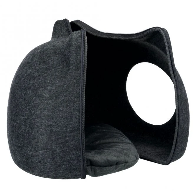Die Kuschelhöhle Cat besteht aus formstabilem Filz (Polyester), welches isolierend und schmutzabweisend wirkt.